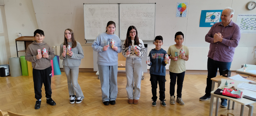 Die Gewinner waren deshalb ausgesprochen stolz, als die Jury die zwei jeweils Klassenbesten der 6a und 6b und den Schulsieger (rechtes Foto, rechts im Bild) auszeichnete.